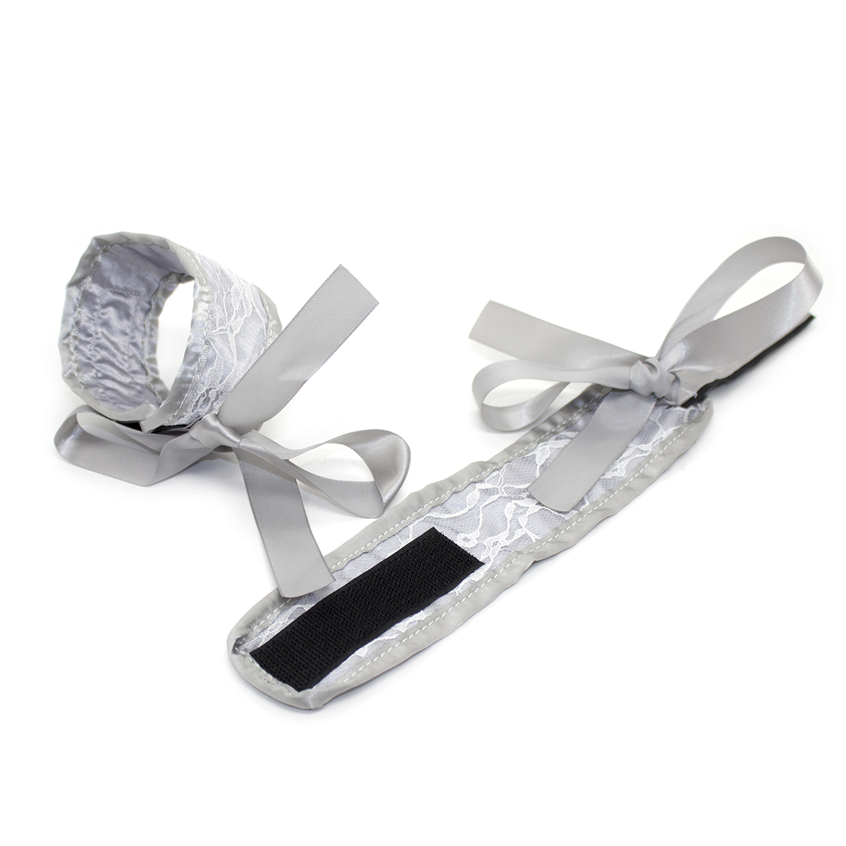 Model No.: 331300009Product: Bondage 3 Set (Hand Cuffs, Eye Mask & Crop)Material: Satin, LaceAvailable Color: Silver-gray and black MOQ: 50 pcs