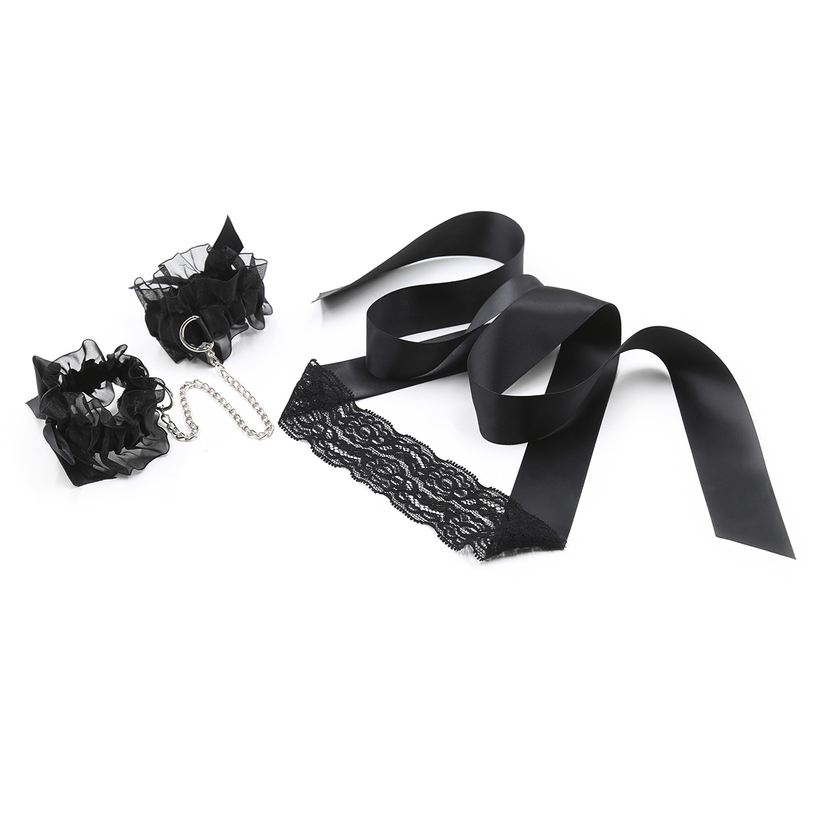Model No.: 332400067Product: Bondage 3 Set (Wrist Nipple Cover, Eye Mask)Material: LaceAvailable Color: BlackMOQ: 50 pcs