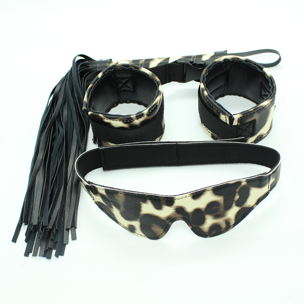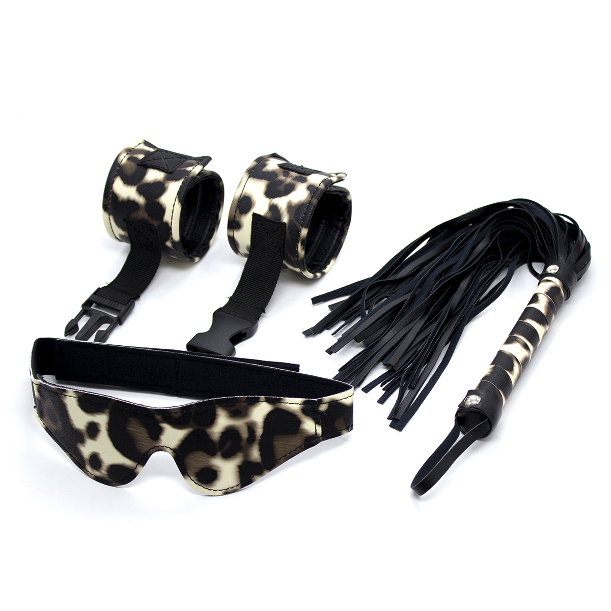 Model No.: 332500007Product: Bondage 3 Set (Wrist Restraints, Eye Mask & Whip)Material: PVC, Metal AccessoriesAvailable Color: LeopardMOQ: 50 pcs