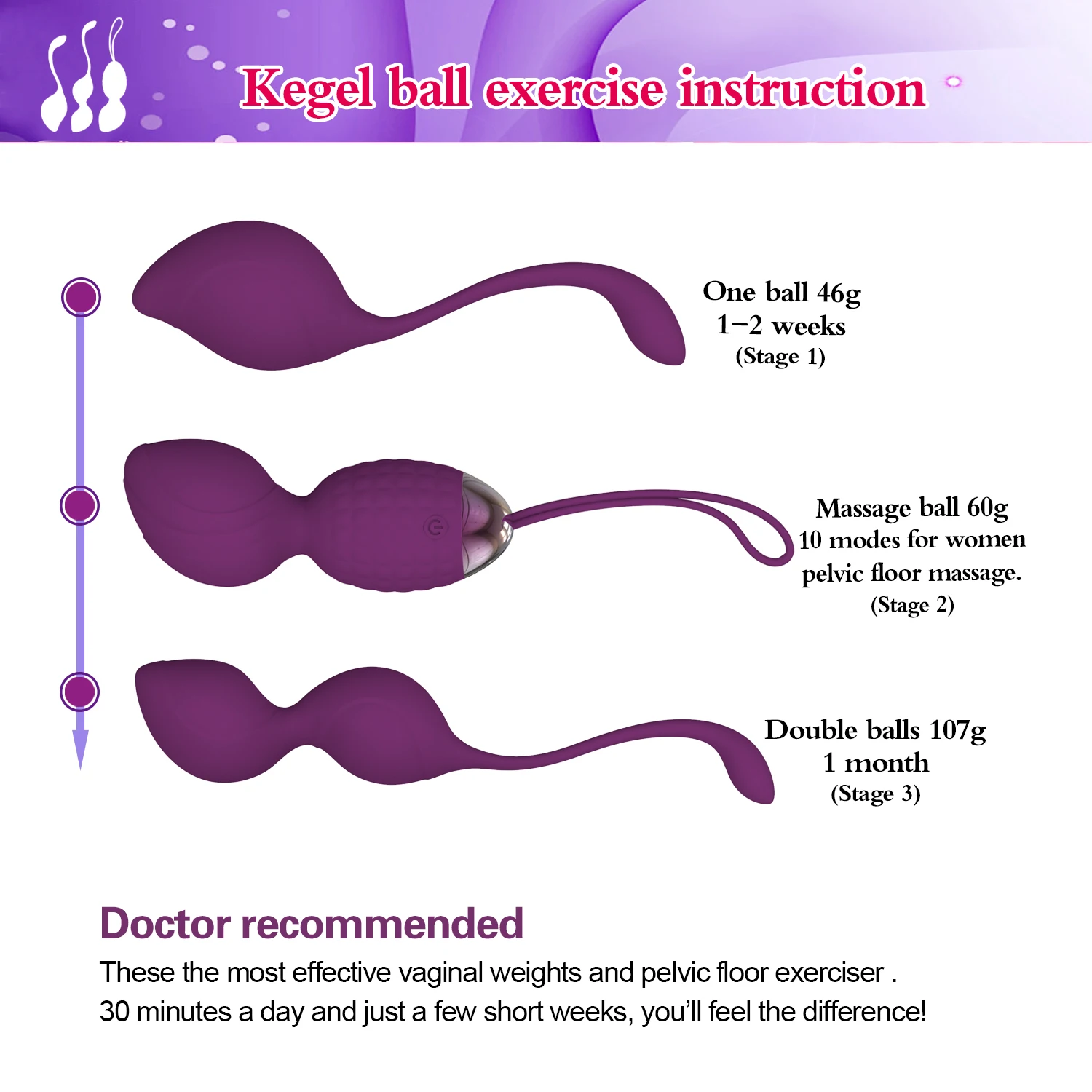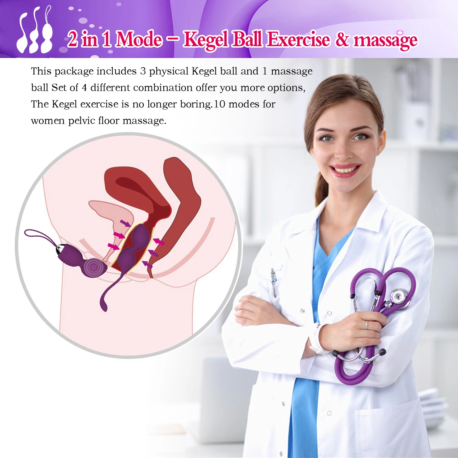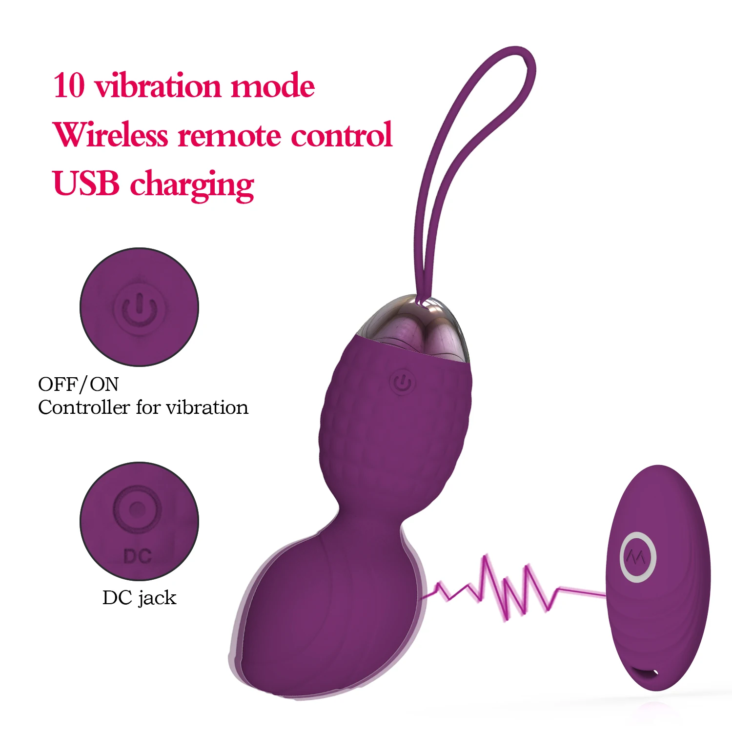 Function: Vagina muscle exercise and tightening, 10 vibration modes, Wireless remote control