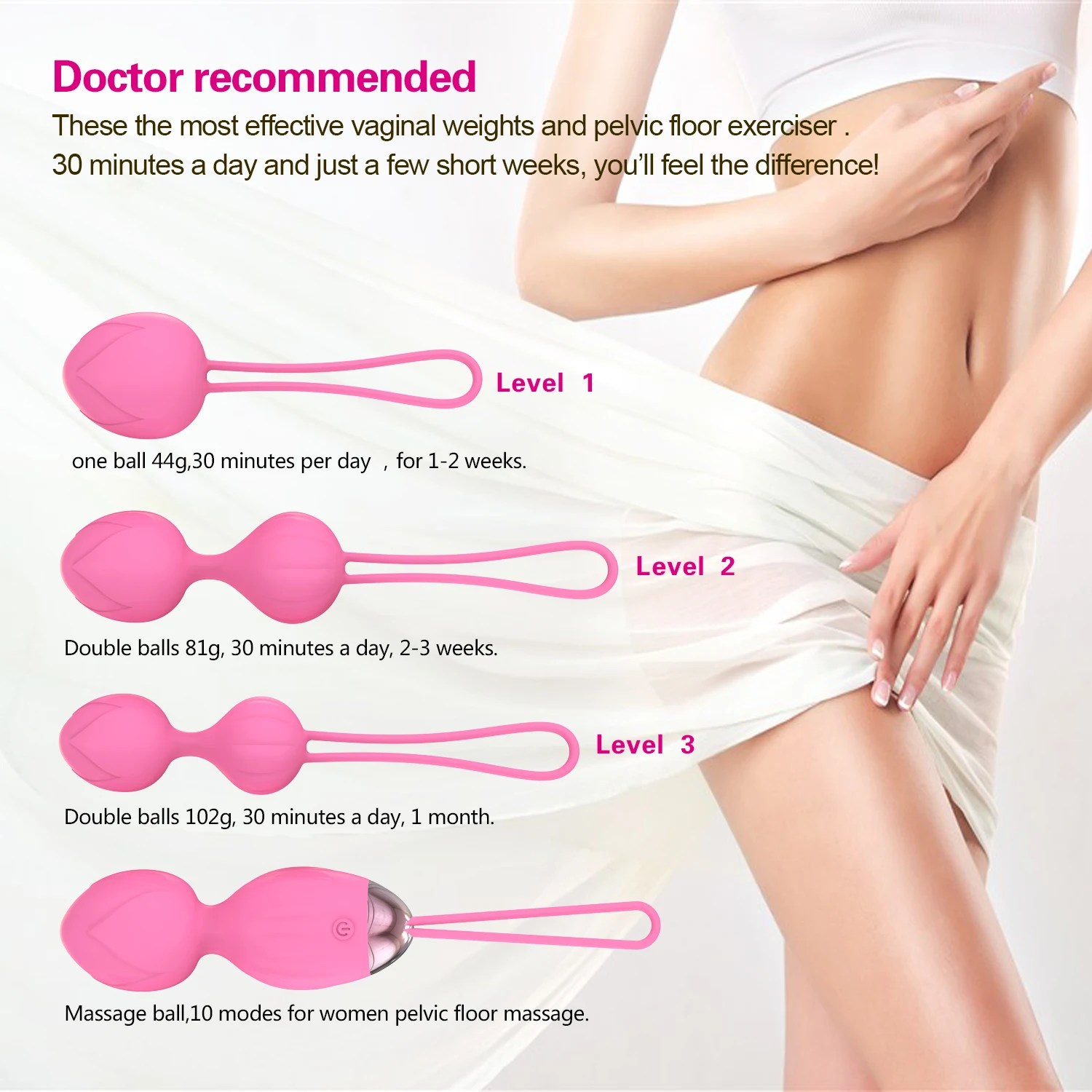 Function: Vagina muscle exercise and tightening, 10 vibration modes, Wireless remote control