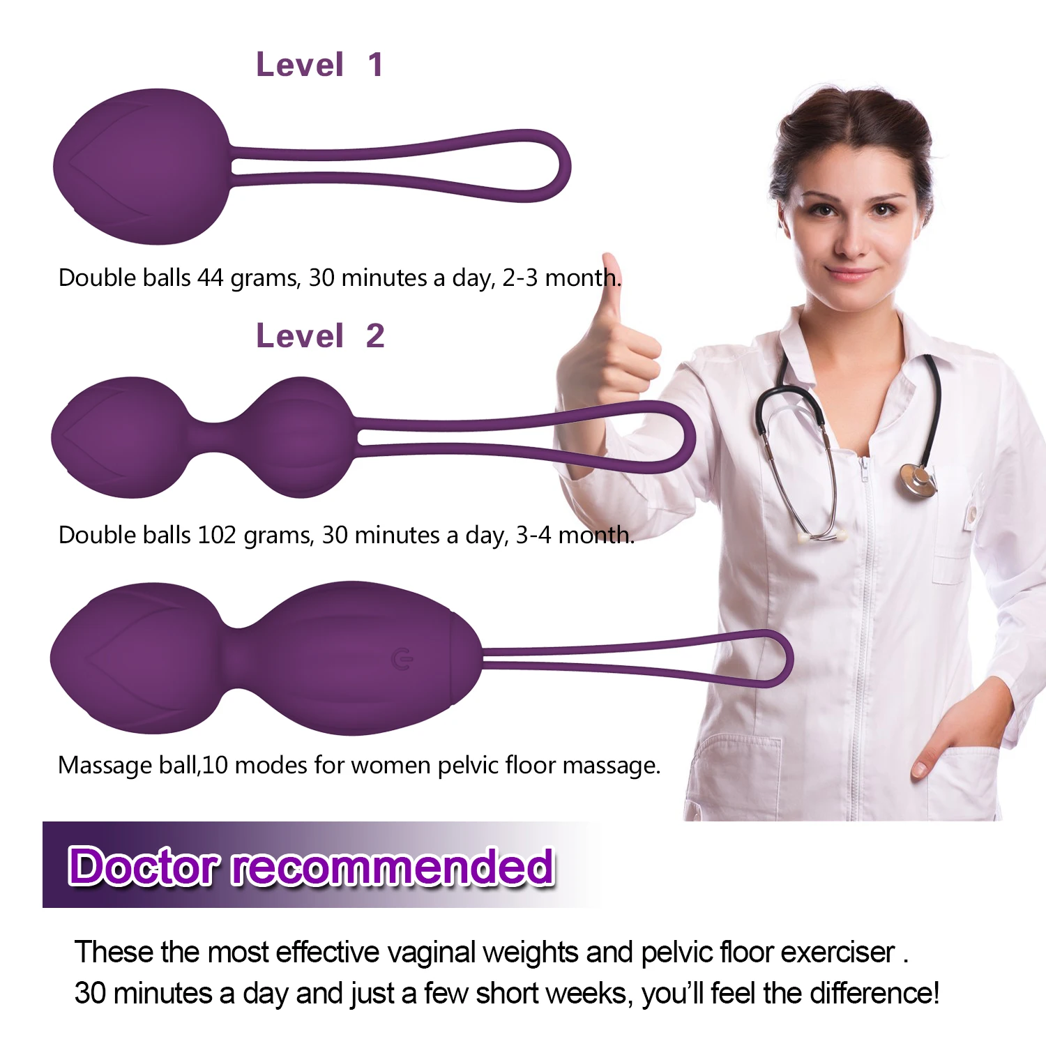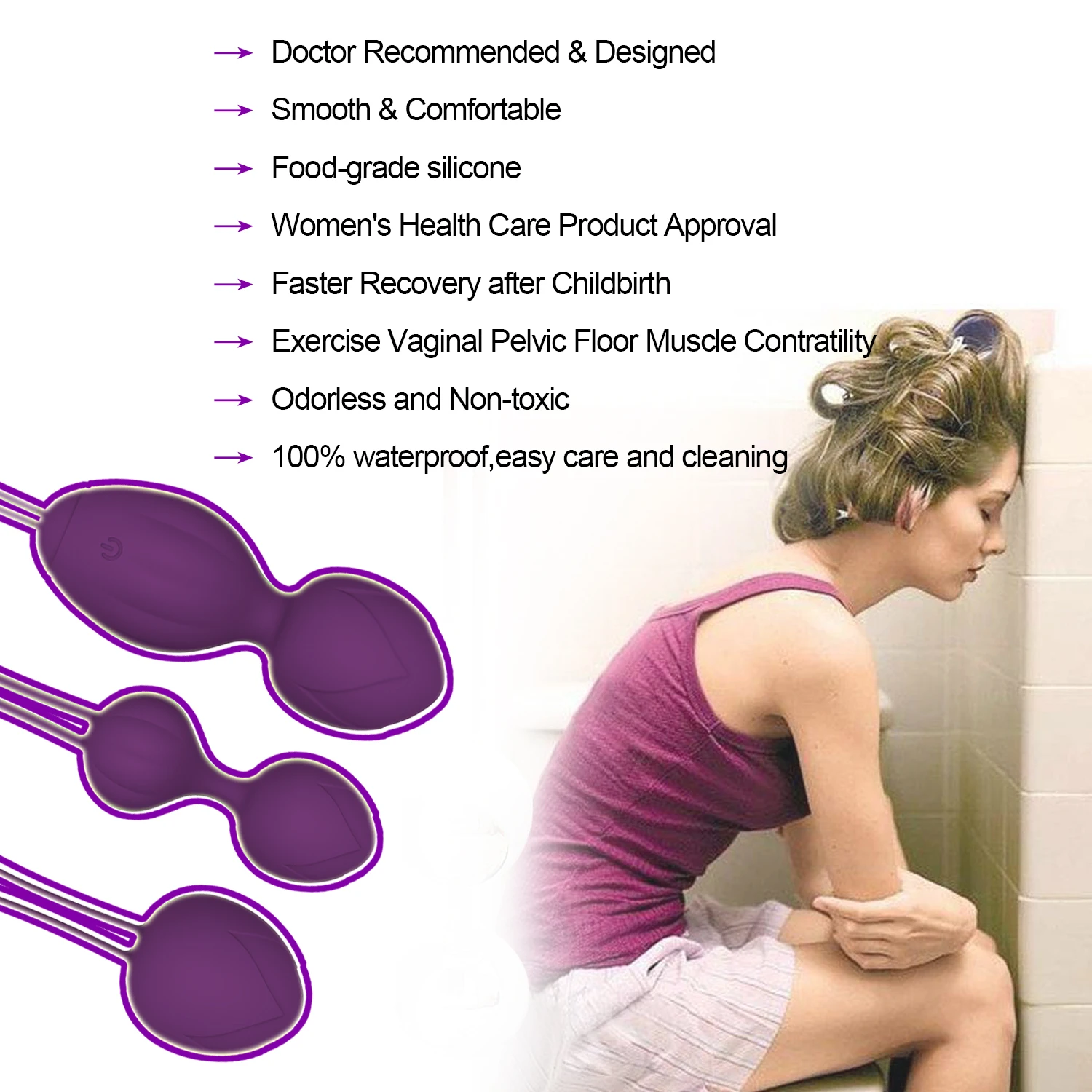Function: Vagina muscle exercise and tightening, 10 vibration modes, Wireless remote control