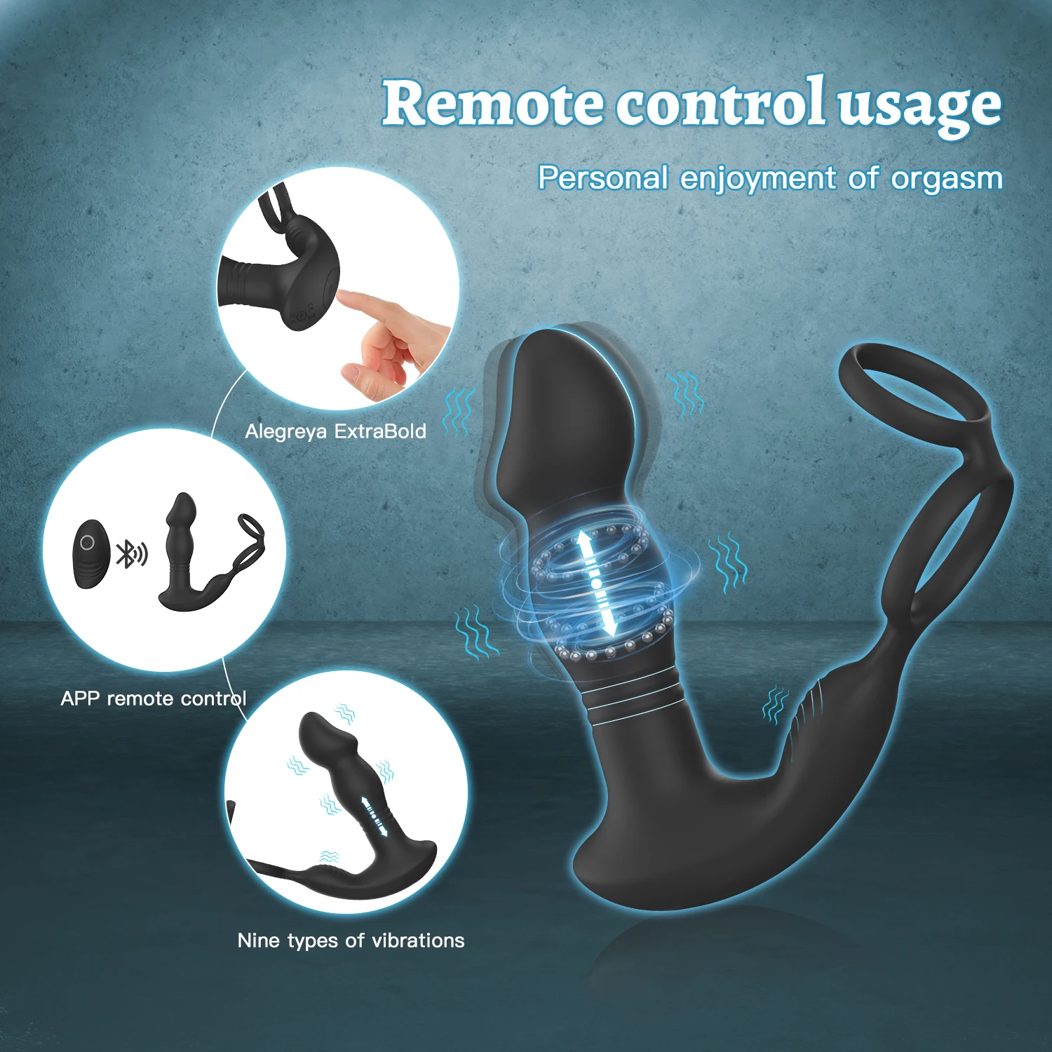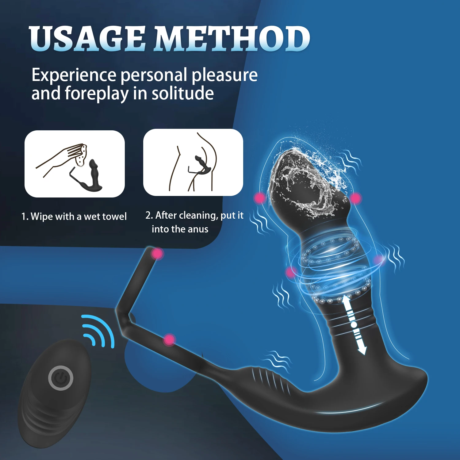 Function: 10+10 vibration modes,Main body rowing and end swaying+cock ring ,wireless control