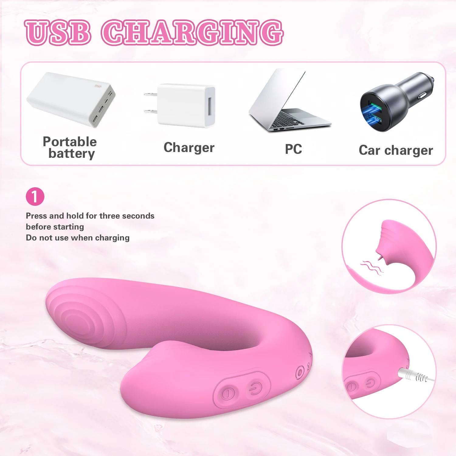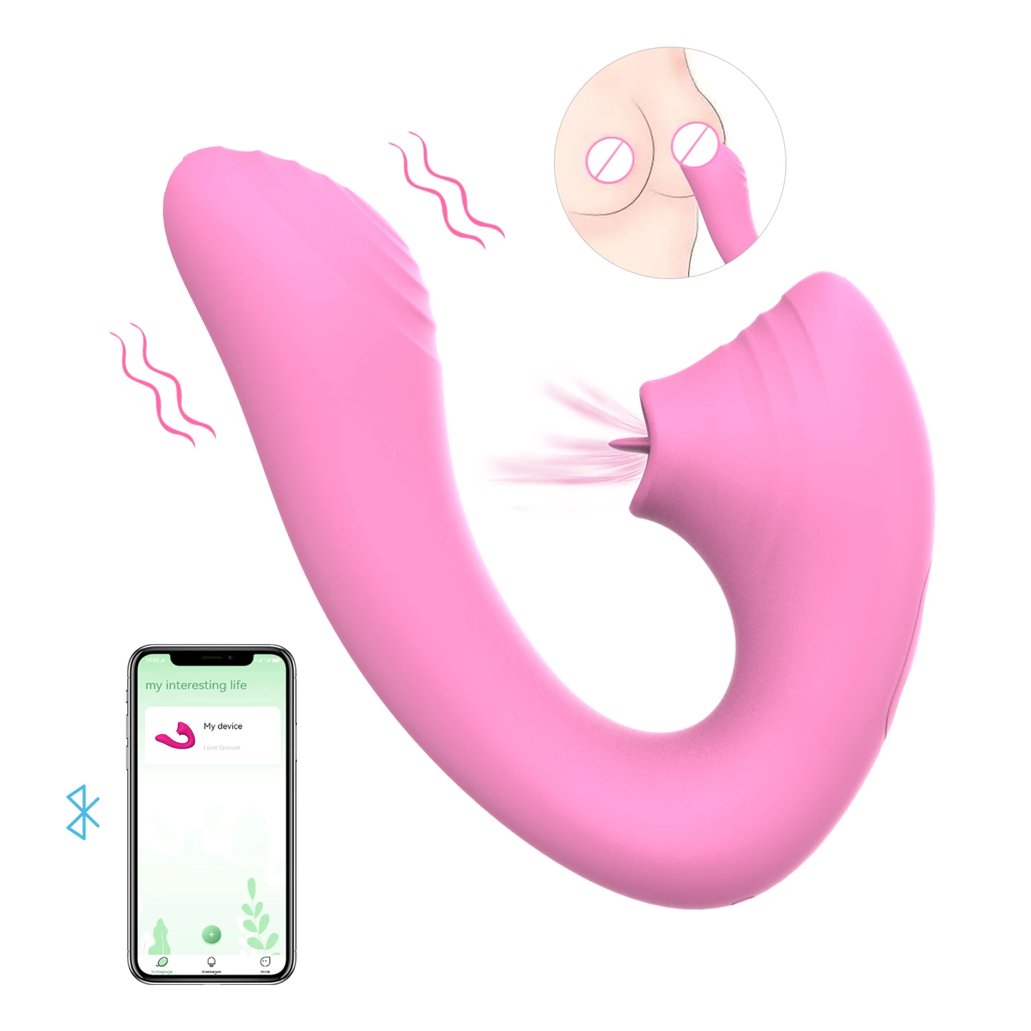 Function: 9 tongue licking modes+9 vibration modes, APP controlled, Bluetooth,