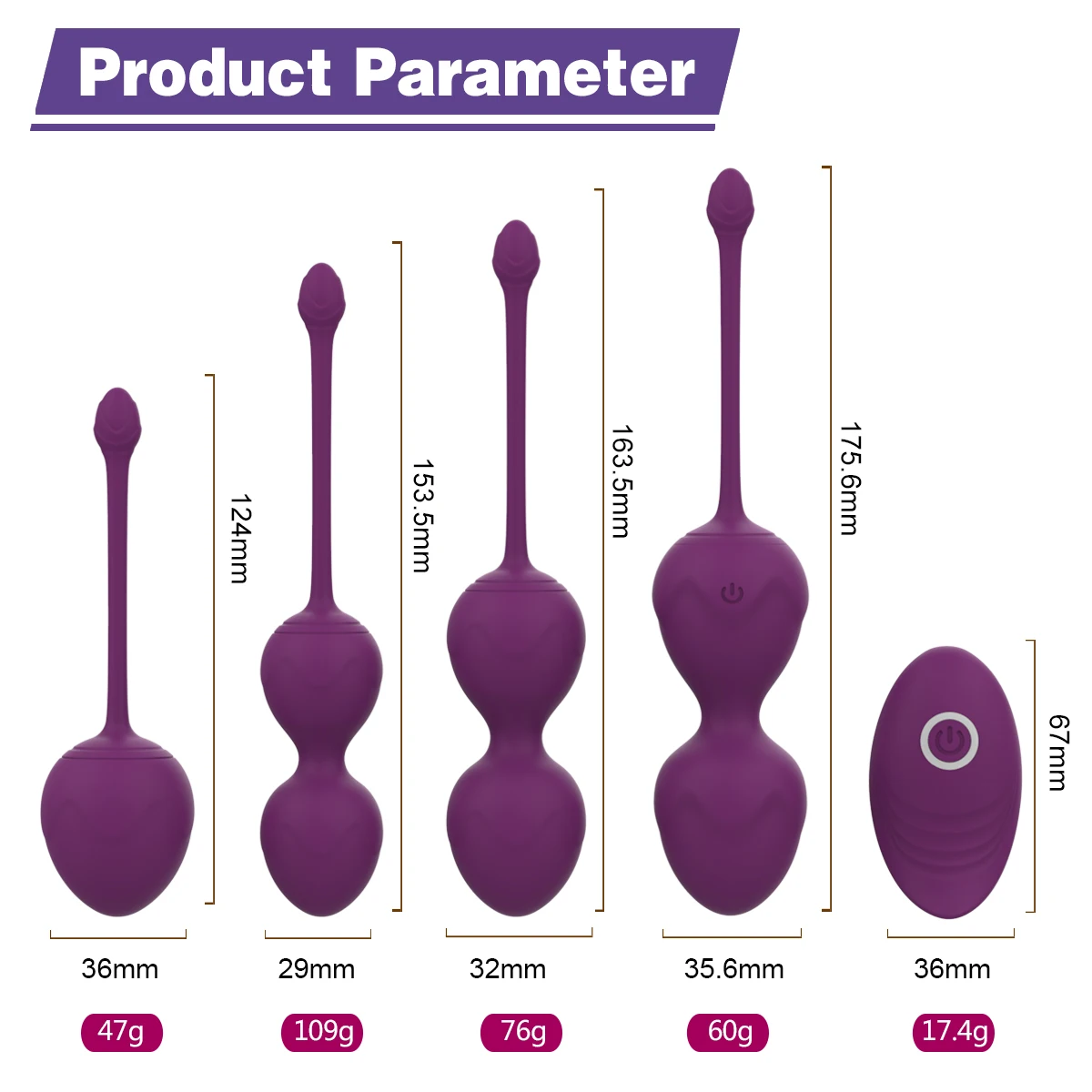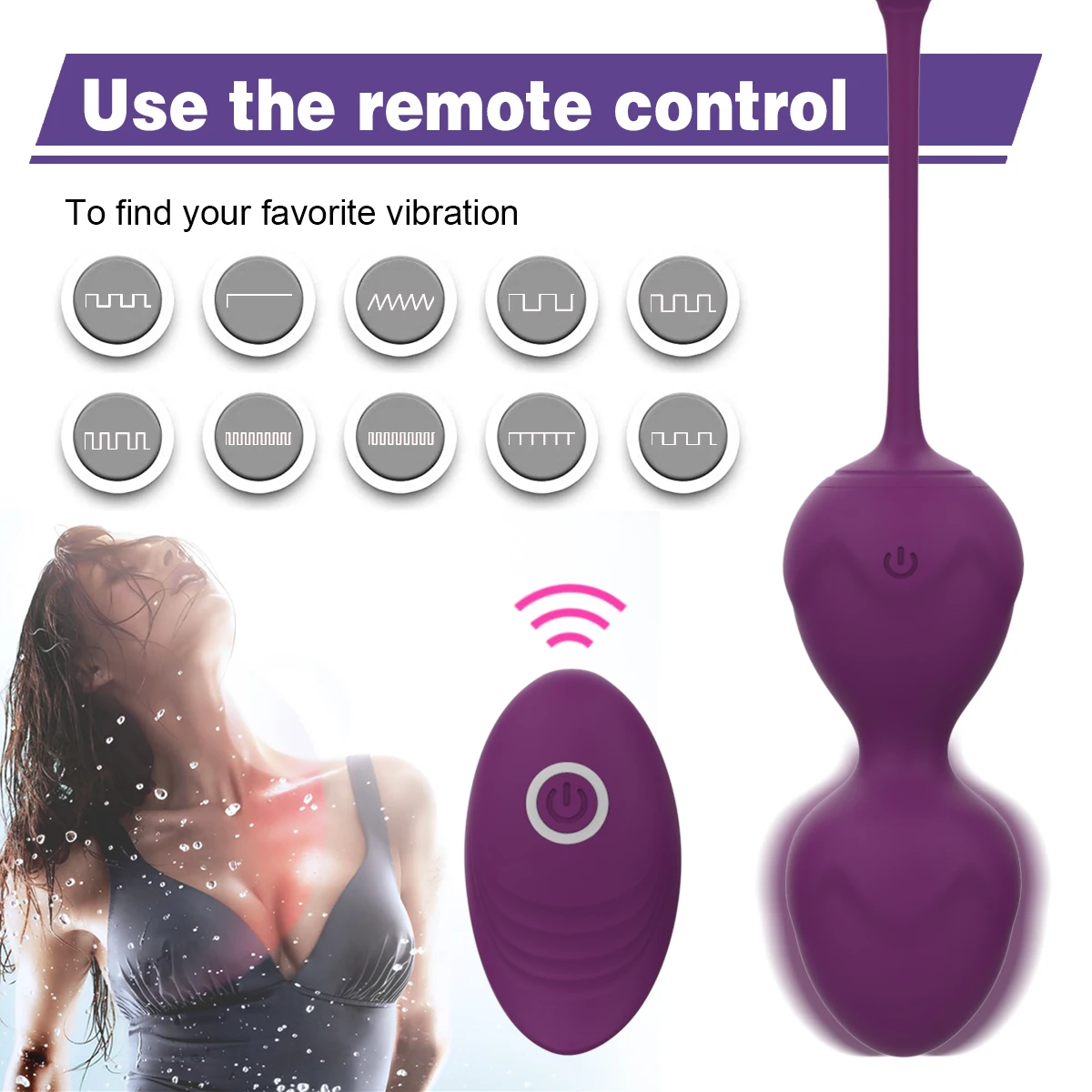 Function: Vagina muscle exercise and tightening, 10 vibration modes, Wireless remote control