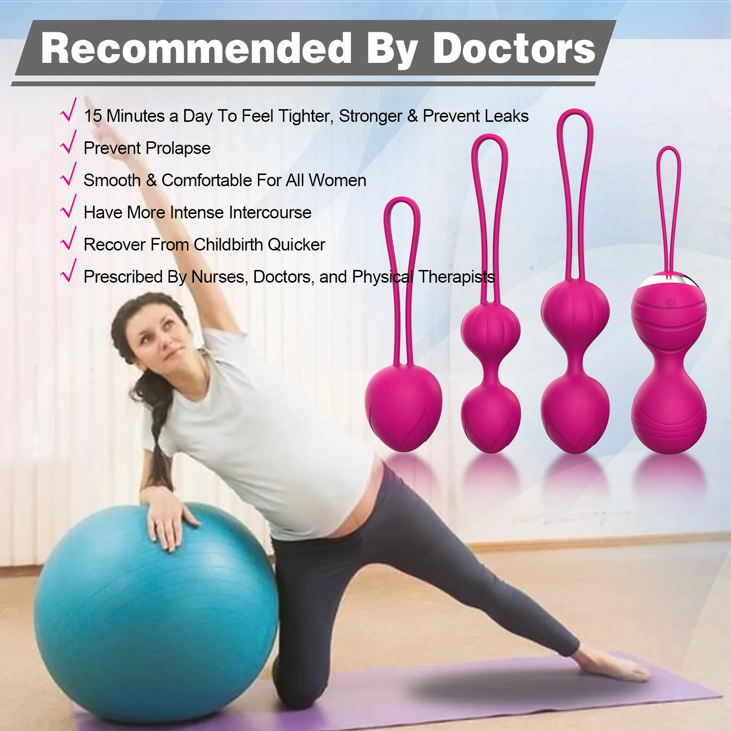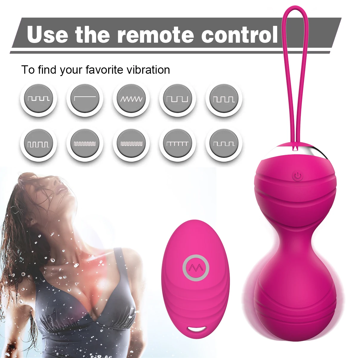 Function: Vagina muscle exercise and tightening, 10 vibration modes, Wireless remote control